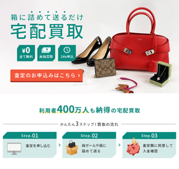 ブランド品専門の宅配買取サービスで、これまでに400万人以上が利用。