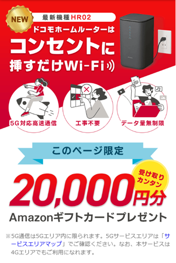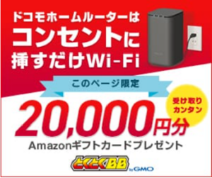 ▶ ドコモの home 5G × GMOとくとくBB 特典付きプラン(リンク先:公式ページ)